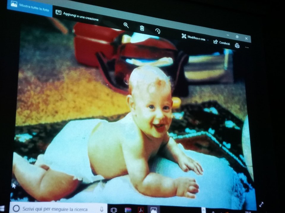 Con le ultime due foto si comincia con immagini che vedono a fuoco l'essere umano. Prese dal mondo della primissima infanzia in due diverse prospettive, la prima molto semplice ed usuale, un bambino a pancia in giù, che sorride e pare quasi in posa, in un momento qualsiasi di normale quotidianità. La seconda, più particolare e da interpretare. Un bimbo, questa volta con espressione di domanda, seduto presumibilmente sulla pancia nuda del papà, che con la mano destra lo "sostiene" e con l'altra sulla testa lo "protegge". Quest'ultima foto ha riportato a dei ricordi lontani, non per Tutti felici, c'è stato rimpianto per occasioni perdute da parte di alcuni, ma pure nostalgia per altri. In conclusione anche questo incontro è servito a conoscere maggiormente se stessi e nello stesso tempo aspetti di vita personale che hanno spiegato atteggiamenti attuali nelle relazioni reciproche.
